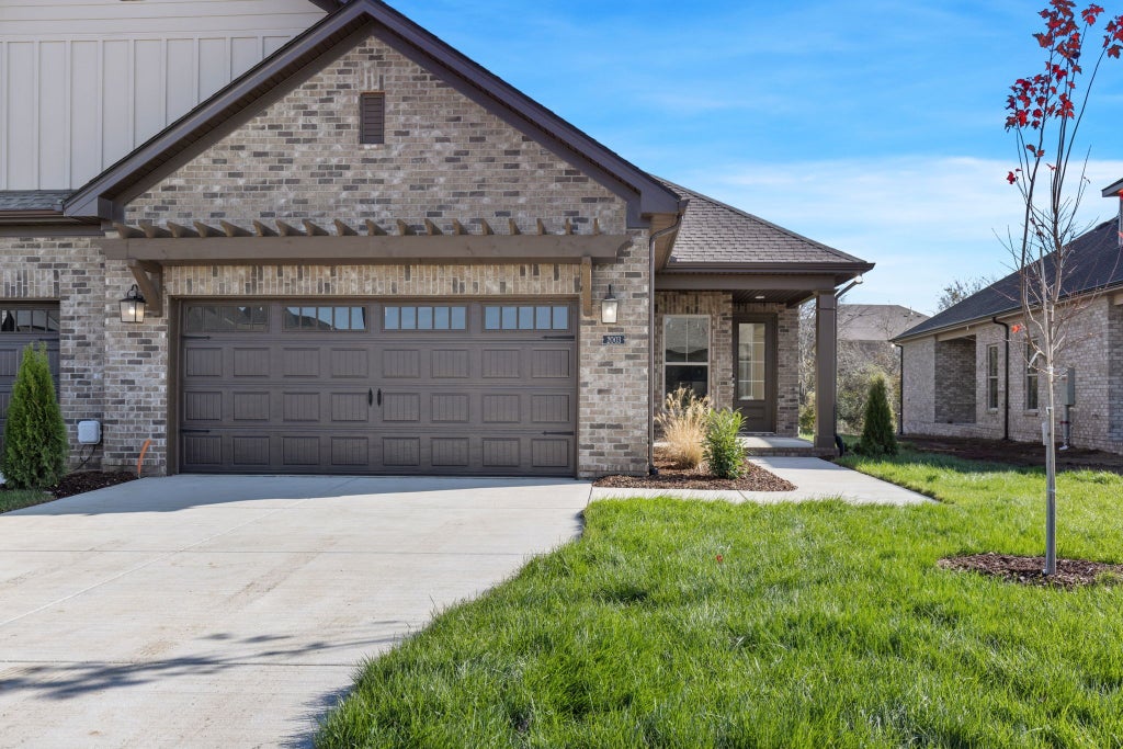 This 2-bed, 2-bath, 1,576 sq ft all-brick home in The Paddock at Kennesaw Farms offers modern comfort with thoughtful design. The open kitchen features quartz countertops, upgraded cabinetry, a designer tile backsplash, and stainless appliances, opening to a spacious dining and living area with a gas fireplace. Durable laminate flooring enhances the main living spaces, while plush carpet and tile add comfort and style to bedrooms and baths. The primary suite includes a soaking tub, tiled shower, and dual vanities, while the second bedroom and full bath provide convenience and flexibility. Board & batten accents, neutral paint, and upgraded finishes add designer appeal. A 2-car front-entry garage completes the home. The Paddock community includes lawn maintenance, irrigation, and amenities for easy living, all near Station Camp schools, shopping, and commuter routes. Ask about our available builder incentives!