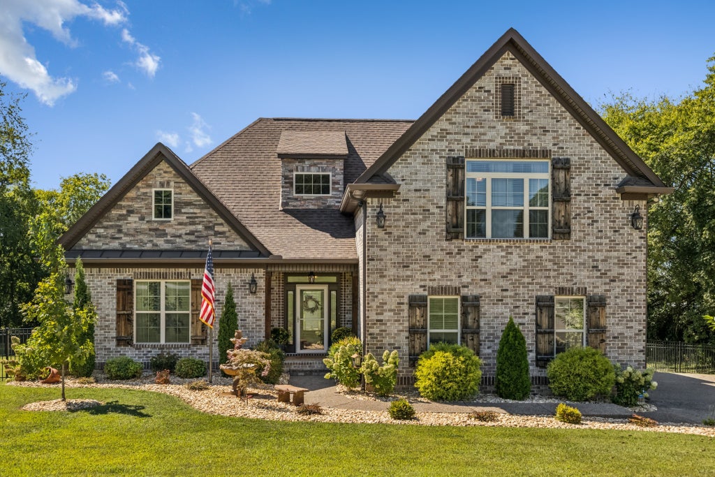 Step into this stunning brick home sitting on a flat 1 1/4 acre lot with no HOA! The front of the home has beautiful landscaping, a stone water fountain, and meditation bench giving it so much curb appeal. This meticulously maintained home offers 3 bedrooms, 3 full baths, an office, and a huge bonus room converted into an in-home theatre (TVs and chairs negotiable). The open-concept living area impresses with a stone fireplace (gas), hardwood floors, wood beams, and a beautiful selection of colors and custom touches. The kitchen is equipped with granite countertops, a stone backsplash, a pantry, and garage and laundry room access. Laundry room has custom built in folding station and shelving (new washer/dryer are negotiable). Step outside to an entertainer's paradise: a covered deck, a large slab patio with a custom fire pit and pergola-covered outdoor dining area, plus ample hidden storage and firewood storage. Finish out this space with an outdoor kitchen and patio furniture for an amazing space to host friends and family. From there, the steps lead down to a huge grassy area ready for an in-ground pool or whatever additions your heart desires. The property also caters to self-sufficiency with a chicken house, solar-powered lights (4), a flourishing raised bed garden with a watering system, and productive fruit trees. Its prime location offers easy access to major highways (109, 70, I-40) and nearby amenities like a new Publix and restaurants. Other furniture not mentioned is also negotiable. Reach out to schedule a tour to see how amazing and unique this home is; words can't do it justice.