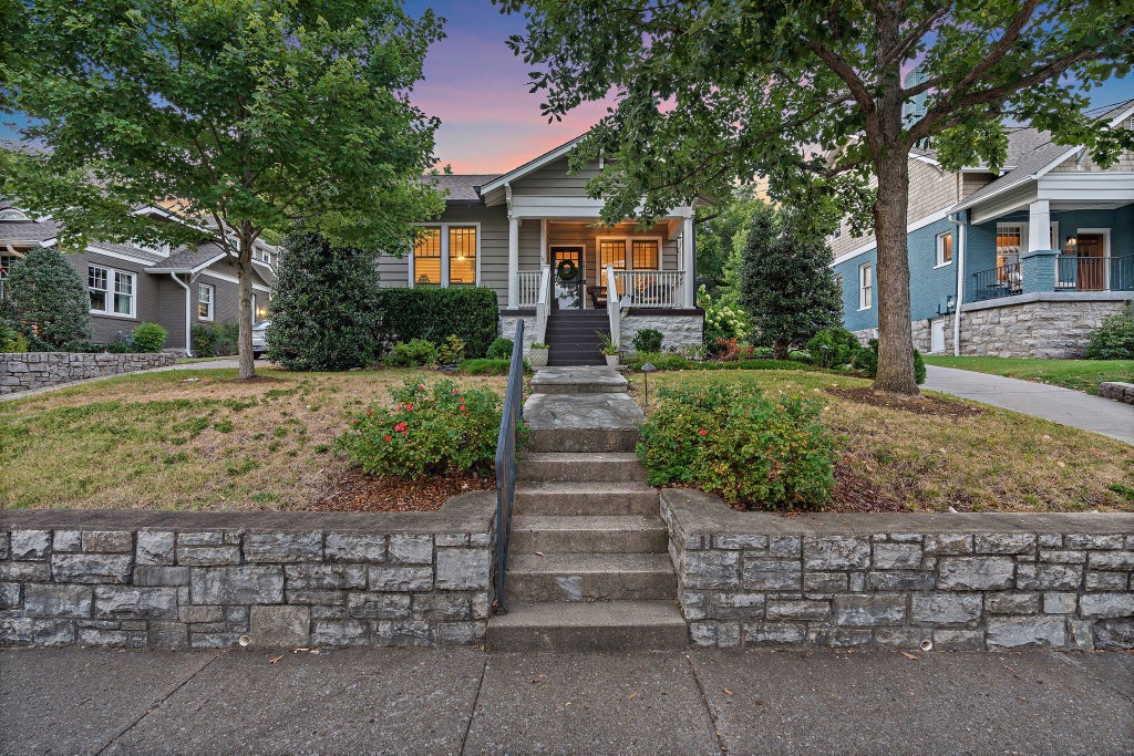 Walkable to 12th South, Hillsboro Village, and so much more, this updated Craftsman style home offers well-planned space with excellent flow and has been meticulously maintained in pristine condition. The main level features a primary suite with a spacious bath including double vanities, a free-standing soaking tub, large shower, and a walk-in closet with natural light. An adjacent room provides flexibility as a study, nursery, or additional living space. The kitchen includes a Dacor 5-burner gas cooktop, KitchenAid double oven and dishwasher, side-by-side refrigerator/freezer, and an oversized island with seating. The kitchen opens to the family room with coffered ceiling and French doors leading to a screened porch and a second covered side porch. A large dining and sitting area, beautiful millwork, and hardwood floors throughout most of the home complete the main level. Upstairs offers three bedrooms, one with en-suite bath, a second full bath, and a spacious flex room that can serve as a bonus room or optional bedroom. An oversized hallway includes an alcove ideal for a home office, plus abundant walk-in attic storage. The beautifully landscaped tiered backyard features a stone path leading to a two-car carport with storage and alley access. Additional off-street parking with step-free entry is also available. If you're looking for the perfect blend of location and charm, this is it. Sidewalks guide you to restaurants, grocery, and shopping. Also, you are minutes from interstate access, Green Hills, Vanderbilt, Belmont and more!
