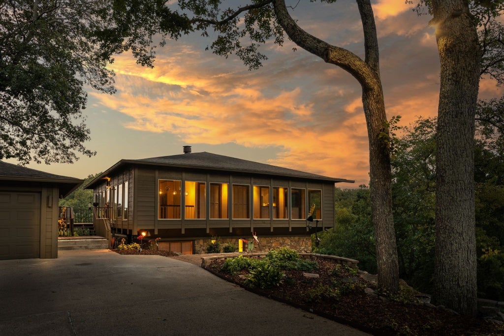 Spectacular bluff lot with views on prestigious Villa Crest Drive. This midcentury modern home is surrounded by trees and Tennessee Hills overlooking Oak Hill. Immaculately maintained , this "treehouse" with 360 degree windows, has endless potential. Bring your architect and/or designer for expansion and renovation ideas. Or this would be a gorgeous lot for new construction. There are so many possibilities! Show this one late in the day to see the sunset!