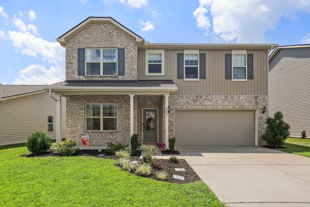 Welcome to this stunning 5-bedroom, 3-bathroom home offering nearly 2,900 square feet of beautifully designed living space. Nestled in a welcoming neighborhood, this home features an open floorplan, perfect for everyday living. Step inside to a bright foyer that opens to a dedicated home office on the left. The heart of the home is the modern kitchen, complete with a center island, white cabinetry, and stainless steel appliances. The kitchen flows seamlessly into the dining area and spacious living room, where a stacked stone fireplace adds warmth and charm. The main level is completed by a guest bedroom and full bath, perfect for visitors. Upstairs, you'll find a versatile bonus/flex space, a convenient laundry room, and four additional bedrooms, including the impressive primary suite. The primary bedroom offers ample space, a generous walk-in closet, and a private en-suite bathroom with modern finishes. Step outside to enjoy the patio and fenced backyard, ideal for play, pets, or peaceful evenings. The attached 2-car garage provides plenty of storage and parking. Welcome home to 3007 Bishop Ln. Up to 1% lender credit on the loan amount when buyer uses Seller's Preferred Lender.