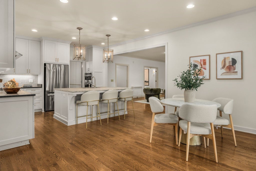 Step inside to find a thoughtful floor plan filled with natural light. Hardwood floors and tall ceilings create an open, airy feel, while the dining and living areas flow easily for both everyday living and entertaining. The kitchen features granite countertops, gas cooking, and all-new hardware. It opens to a sunroom with views of the beautifully landscaped, irrigated garden.