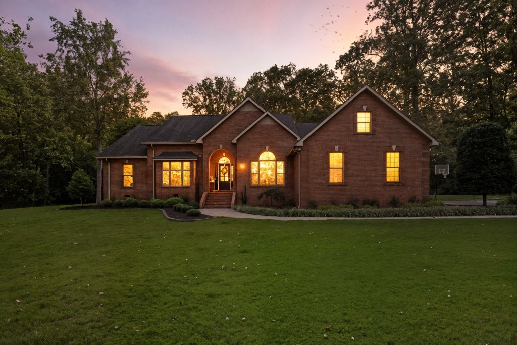 Experience refined living with this exceptional 4-bedroom, 2.5-bathroom custom estate, perfectly situated at the end of a private drive on approximately 5 acres of peaceful countryside. Offering a rare combination of sophistication, seclusion, and functionality, this all-brick residence is complemented by a 2-car attached garage and an additional 1-car detached garage/workshop, providing abundant space for vehicles, storage, or hobbies. Inside, timeless craftsmanship is on full display with intricate trim work, wainscoting, built-ins, and beautifully refinished hardwood floors. The gourmet kitchen is both elegant and functional, showcasing custom cabinetry, a sunlit breakfast nook, and expansive prep space designed for seamless entertaining. The luxurious primary suite is a true retreat, featuring tray ceilings, a spa-inspired custom tile shower, indulgent jetted tub, and dual vanities with exceptional storage and counter space. The thoughtfully designed laundry room continues the home’s emphasis on convenience, with extensive cabinetry and countertops for organization. Step outside to enjoy your private oasis—whether relaxing in the screened-in porch, gathering on the patios under glowing string lights, or savoring evenings by the striking wood-burning stone fireplace. Every detail has been curated to enhance both everyday living and effortless entertaining. This remarkable property offers unparalleled privacy, timeless style, and a lifestyle of luxury.