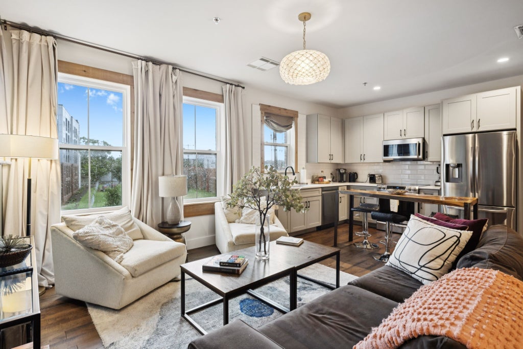 Discover luxury and convenience in this fully furnished condo located in The 1865, a gated Midtown Nashville community just minutes from Broadway, Music Row, and Vanderbilt. This stylish residence features an open kitchen with stainless steel appliances, a spacious layout, and a unique extra vanity with sink in the secondary bedroom—ideal for guests. With MUG zoning, the property is currently an Airbnb and is eligible for Non-Owner Occupied Short-Term Rental (NOO STR) permits, making it an exceptional opportunity for investors or those seeking a second home in one of Nashville’s most vibrant areas. Residents of The 1865 enjoy a wide range of amenities, including a saltwater dipping pool, outdoor bar and grilling area, sky deck with city views, fitness center, and plenty of free parking. The community’s standout feature is The 1865 Club, a brand-new on-site speakeasy offering craft cocktails, small bites, and live music—all located in the basement of the main building. As an added bonus, the seller is offering a one-year membership to the speakeasy with purchase. Don't miss your chance to own a piece of Nashville luxury with income potential built in.1% lender credit with use of preferred lender. Video coming Thursday