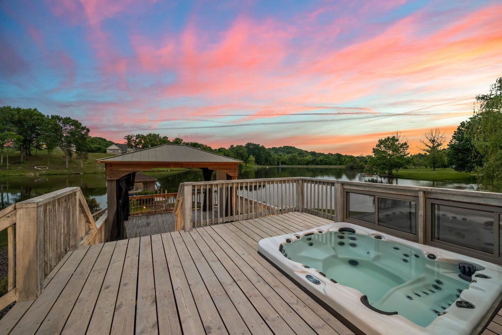 Custom Built Lakefront Living with Full In-Law Suite – Ideal for Multi-Generational living, potential rental income, or the most incredible guest space! Space for 4+ bedrooms! With a private dock for kayaking, fishing, and boating, and two fully independent living spaces, this home at this price is truly a steal! The main level offers stunning sand-and-finish hardwood floors, a spacious primary suite with serene lake views, and walk-out access to the upper deck and hot tub. Two additional guest bedrooms upstairs each include private ensuite baths. A large 3-car side-entry garage and expanded parking pad provide ample space for extra parking. Downstairs, the fully finished walk-out basement is a complete in-law apartment with its own separate entrance and driveway. This private living space includes 1 bedroom plus an office, 1.5 baths, a full kitchen, living room, laundry area, and a 3-car covered carport. Designed with accessibility in mind, the zero-step entry ensures ease of use for all. Additional features include a safe room, hidden room, and generous storage throughout. An interior staircase connects both levels, offering flexibility and convenience while preserving privacy when needed. Start your mornings in the breakfast nook overlooking the water, and unwind in the evenings with nature’s show: bald eagles, herons, turtles, ducks, deer, beavers, migrating birds, and fish jumping which is all visible from your deck or dock. Ready to build community? This HOA offers the most fun and unique events- including poker by boat on the lake! Enjoy peaceful lakeside living just minutes from all that Spring Hill has to offer. Homes with this level of flexibility, natural beauty, and thoughtful design are rare. Don’t miss your chance to make it yours! UC with a 48 hr kickout clause- continue to show!