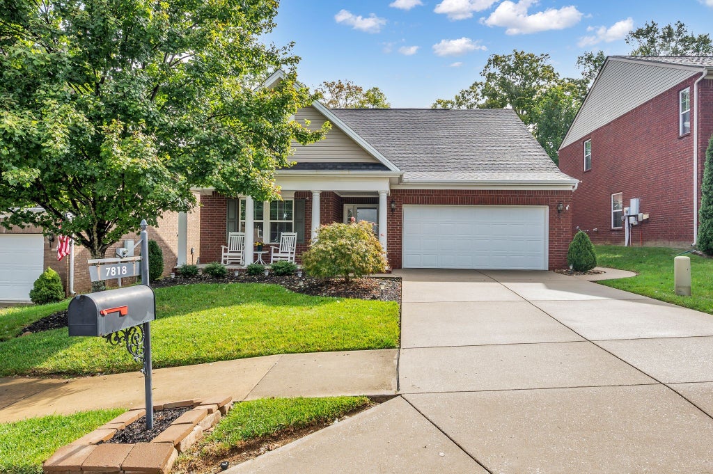 Low maintenance living with charming front porch ~ Open floorplan ~ Main floor primary suite & additional BR on main level ~ Office with french doors~ Spacious kitchen, all appliances remain ~ Sunny dining area ~ Amazing large screened patio includes big screen TV ~ Upstairs features sunny living area, bedroom & full bath, perfect in-law suite with electric Lift Chair to 2nd floor ~ Lovely private back yard with patio ~ Irrigation ~ Convenient location to grocery, restaurants & shopping
