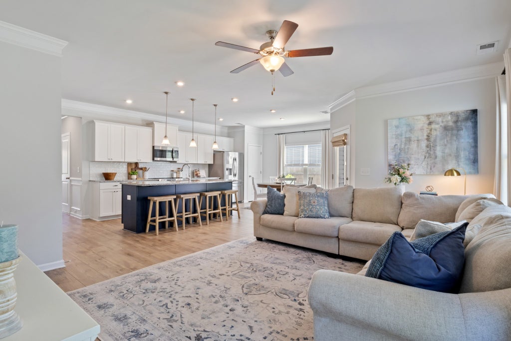 Beautiful home in the Summerdale neighborhood with an inviting open floor plan. Situated on a corner lot, the fenced yard features a fire pit and plenty of space to enjoy the outdoors. Inside, the light-filled kitchen offers a designer navy island and opens to the main living area, perfect for gathering. The oversized primary suite includes a huge walk-in closet along with a walk-in shower and garden tub for relaxing. Convenient cabinets over the washer and dryer provide extra storage, and sellers are including all kitchen appliances along with the washer and dryer, making this home move-in ready.