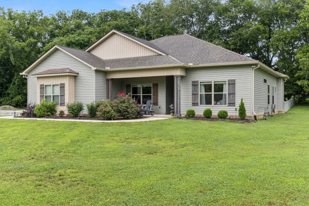 NO HOA - NO RESTRICTIONS, All 1 level. New 24x30 detached shop/garage with 10 ft double doors and electric. (This is any guys dream.) This home is obsessively clean and almost brand new construction. The sellers just screened and enclosed the back covered porch with cedar. Fenced back yard for your human or fur babies with mature trees. A total of 4 garage spaces, 4 bedrooms, the front Bedroom could be used for a home office or guest bedroom. This is a huge open concept home, great for entertaining. Natural gas fireplace, luxury vinyl flooring, So many windows with custom roller shades to allow all the natural light. The kitchen has an 8 foot island, all kitchen and bath counter tops are custom picked granite. The primary bedroom is opposite all the public spaces for privacy with a huge en suite bath with large tile shower, walk in closet with built in storage and private water closet. This beautiful home is sitting on almost 1 full acre & only 10 minutes from Lebanon's shopping, restaurants and medical services. Only 35 minutes to BNA airport. Its very quiet and peaceful on a dead end road. This home checks all the boxes for both of you..... Call for your private showing today.