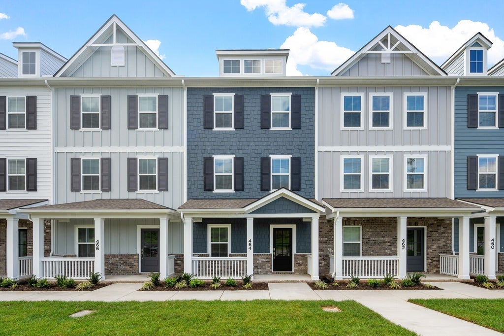 LOT 32. Brand new designer townhome in the heart of Smyrna! Ready for a quick move-in! The Wesley floorplan is a beautifully appointed open concept layout with 4 bedrooms, 3.5 baths with large single-car garage with extra space for storage. Includes kitchen with stainless steel appliances, quartz countertops, 42" cabinets, and tile backsplash. Relax and unwind on the large back deck or enjoy views from the front covered porch. Interior blinds included. Quartz countertops in all baths, tiled owner's shower, tiled laundry and bathroom floors, upgraded hardware and faucets and more! Perfect commuter location close to I-24.