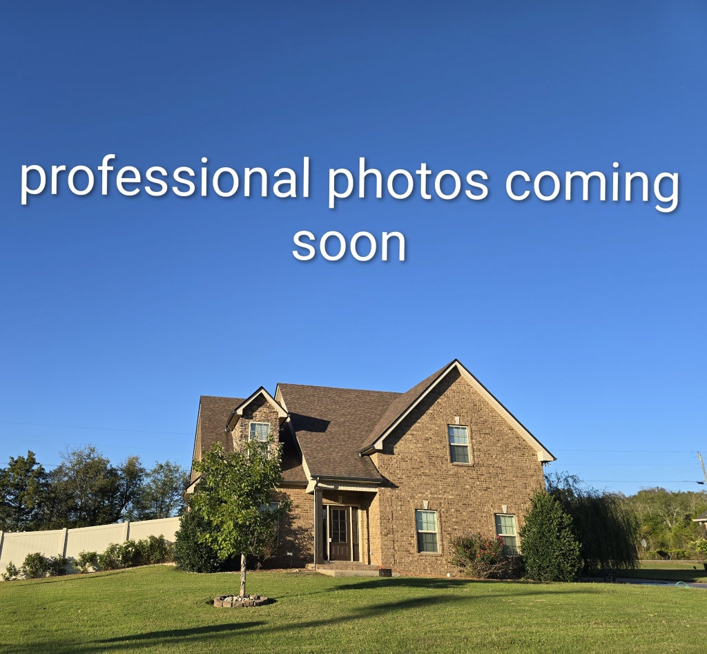 NO HOA! All Brick, 4 bedroom, 2.5 baths, Large kitchen, granite, & custom cabinets, open floor plan, beautiful trim.. Home features real hardwood and tile, fireplace, covered patio with tiled porch, fenced back yard, fruit trees, extra concrete, garden area, 16x28 storage building w/electric, extra electra plugs outside, 4th bedroom can be used as bonus and much more.