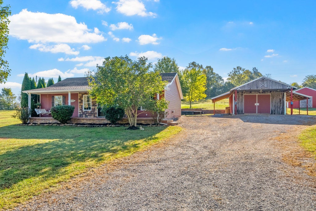 Escape to the country and enjoy peaceful living on 3 usable acres surrounded by beautiful farmland — with no HOA and endless possibilities! This renovated home features charming curb appeal with a huge rocking-chair front porch perfect for morning coffee and sunset views. Inside, you’ll find no carpet, 3 spacious bedrooms plus a flex room (or 4th bedroom), and an inviting open layout with built-ins and a stylish kitchen island ideal for entertaining. The HVAC system is only 3 years old, offering comfort and efficiency year-round. Outside, there’s plenty of space to create your dream mini-farm — bring your chickens, goats, and garden plans! The property also includes a detached 2-car garage or barn with electrical, a second outbuilding for additional storage or animal shelter, and even an outdoor storm shelter for peace of mind. Country charm meets functional living — this one truly has it all!