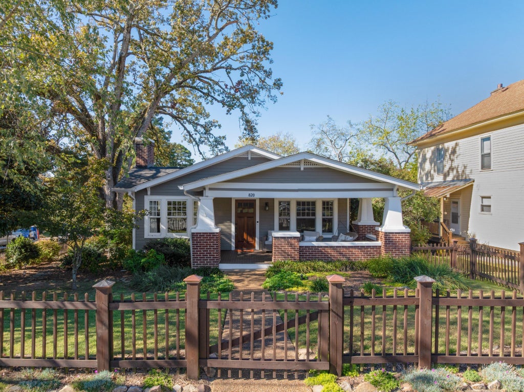 The epitome of curb appeal and charm, this 1920's North Chattanooga home with a detached garage is sure to impress! Located on a desirable corner lot within walking distance of the Normal Park schools, you will love the outdoor living spaces, updated interior design and decor, and the fact that there is a 2nd finished office on the back of the garage - even the recently encapsulated basement is pristine. Some additional notable features include hardwood and tile throughout, crown moldings, an open floor plan, decorative and recessed lighting, beautiful trim, tankless water heater, a covered front porch, a rear screened porch with vaulted ceiling, a patio area and enclosed front and back yards. Your tour begins with entry to the living room that has a gas fireplace, French doors to the office and is open to the dining room. The office could easily be utilized as a cozy den if preferred. The dining room opens to the kitchen which has a wonderful cottage feel with its vintage sink and O'Keefe and Merritt gas stove with double ovens, chopping block countertops, wainscotting. It also has a pantry with a pocket door and access to the screened porch and steps to the garage, patio and yard - perfect for everyday living. The primary bedroom is on the back side of the house and has a double door entry to the primary bath with a dual quartz vanity, shower with tile and glass surround and a stackable washer and dryer. The guest bedroom and full guest bath round out the main house. Head out to the garage where you will find a side covered potting area. the nice sized single garage bay with driveway to Tremont St, and the office area which has a hardwood floor and built-in desk space. Simply a fantastic opportunity for the buyer seeking a turn-key home close to schools, parks, hospitals, the shopping and restaurants of the North Shore and downtown Chattanooga, so please call for more information and to schedule your private showing today.