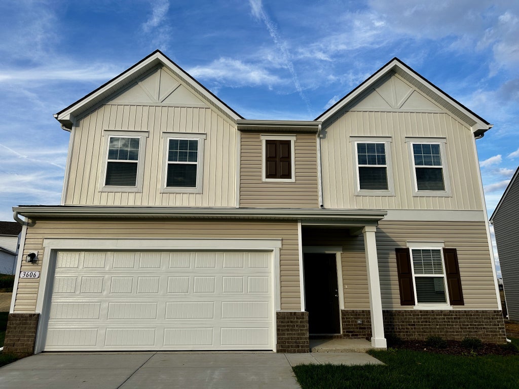 Enter inside the Beacon floorplan through the covered front porch, where a versatile flex room offers the perfect space for a home office, playroom, or additional living area. The open-concept kitchen, dining, and family room create a bright and inviting space, ideal for everyday living and entertaining. Just off the family room, you’ll find the staircase to the second floor, while the mudroom and powder bath are conveniently located near the kitchen. A walk in pantry provides ample storage, and the dining area opens to a covered patio for seamless indoor-outdoor living. Upstairs, the spacious primary suite features a private bath and large walk-in closet. Three additional bedrooms share a full bath, with two bedrooms offering walk-in closets. The laundry room is also located upstairs for added convenience. This home is complete with brand new stainless steel appliances, granite countertops, energy efficient design, and a 2-car garage. Everything you need for comfortable modern living!!