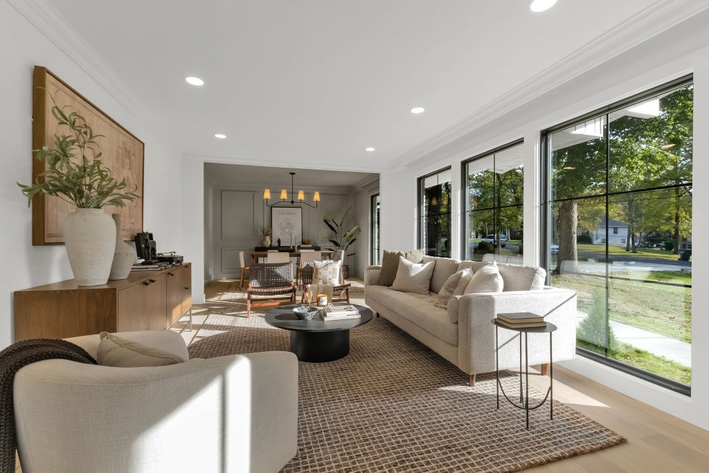 The architecture exudes classic Mid-Century Modern charm, beautifully complemented by a host of sleek, high-end updates both inside and out. Nestled on a quiet dead-end street and a generous, nearly half-acre lot. Step inside to a bright, welcoming floor plan bathed in natural light, thanks to sleek modern black windows that truly make a statement. The entire home features gorgeous white oak flooring and matching white oak cabinetry throughout, creating a cohesive and warm aesthetic. The heart of the home is a renovated cozy kitchen designed for the modern chef, featuring quartz countertops. The home is designed with comfort in mind, offering oversized bedrooms for maximum relaxation. Luxurious primary suite, a true retreat complete with a cozy gas fireplace. All bathrooms are updated with designer finishes, providing spa-like experiences. Walk-through laundry room offering abundant cabinet storage. The exterior is just as inviting as the interior. You'll love the seamless blend of indoor-outdoor living with a screened-in porch that flows onto a versatile deck. Gather friends and family around the inviting exterior fire pit with seating area for year-round enjoyment. The property also features a fresh concrete driveway that provides ample parking space and leads to a rear attached 2-car garage. This is more than just a home; it's a beautifully designed sanctuary ready for you to move in and enjoy!