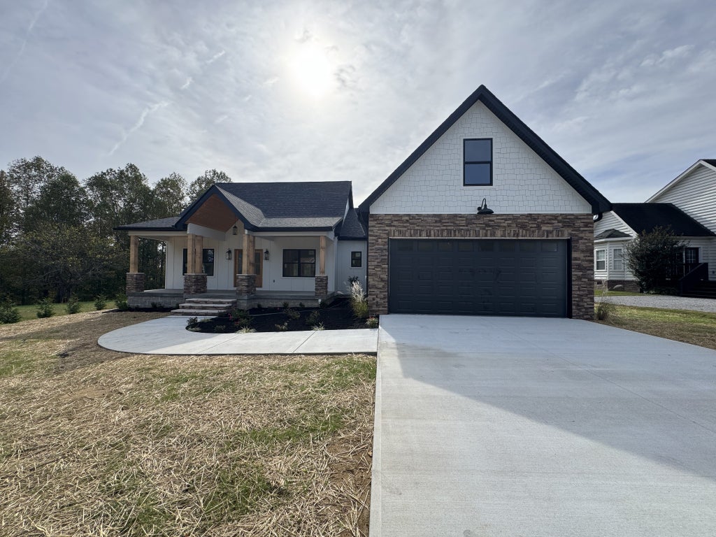 COMING SOON! NEW CONSTRUCTION! This spacious 4-bedroom, 3-bath home offers 2,098 sq ft of comfortable living space with quality finishes throughout. The main level features 3 bedrooms and 2 baths, while the upstairs includes a private bedroom and full bath—ideal for guests or a home office. The kitchen comes equipped with a gas stove and refrigerator, and the home offers abundant storage with extra space throughout. Thoughtful details include custom light fixtures and champagne gold faucets and hardware, adding a touch of elegance to every room. Enjoy the curb appeal of stone and Hardie board siding, a welcoming covered front porch, and a concrete driveway leading to the attached 2-car garage—all set on a beautiful, tree-lined yard.