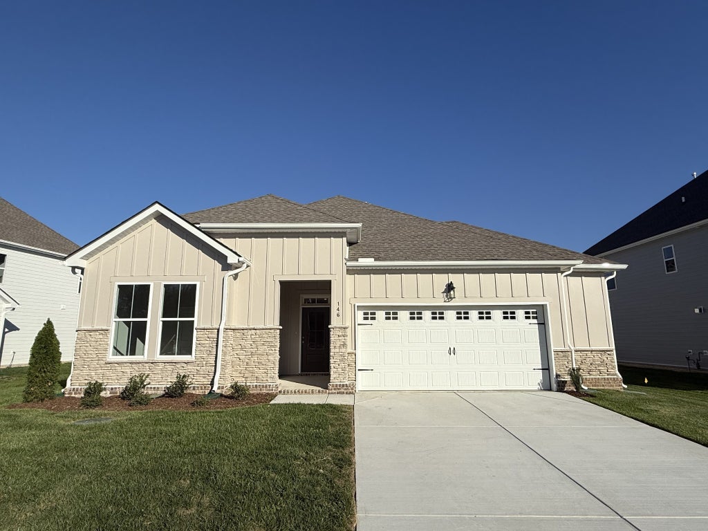 Lot 63 - MOVE IN Ready! Welcome to this stunning single-level "Cheyenne" home located just 10 minutes from shopping, dining, and top-rated Mt. Juliet schools. Professionally curated with the Timeless Collection, this home features a gourmet kitchen complete with white cabinetry, quartz countertops, herringbone backsplash and pendant lighting. We have also included double ovens, an electric cooktop, spacious island, and walk-in pantry in the kitchen— perfect for both everyday living and entertaining. Just off the kitchen, a large dining area offers plenty of space to host family dinners, holiday gatherings, or casual meals with friends, making it the true heart of the home. The open-concept layout flows seamlessly into the great room, where the vaulted ceiling creates a bright, airy space ideal for relaxing or hosting guests. Step outside to relax under your large covered rear patio, ideal for year-round outdoor living! The owner's suite is a private retreat, enhanced by a tray ceiling and a luxurious en-suite bath that includes a separate soaking tub, tiled shower, and dual vanities with quartz countertops. The spacious laundry room includes a utility sink for added convenience, while the oversized 2.5-car garage offers extra storage, perfect for tools, bikes, or seasonal items. Willow Landing will soon feature amenities such as a pool, playground, and walking trail, offering a lifestyle that blends everyday ease with outdoor enjoyment. Don't miss your chance to own this beautifully appointed single-level home in a location that offers both tranquility and accessibility.