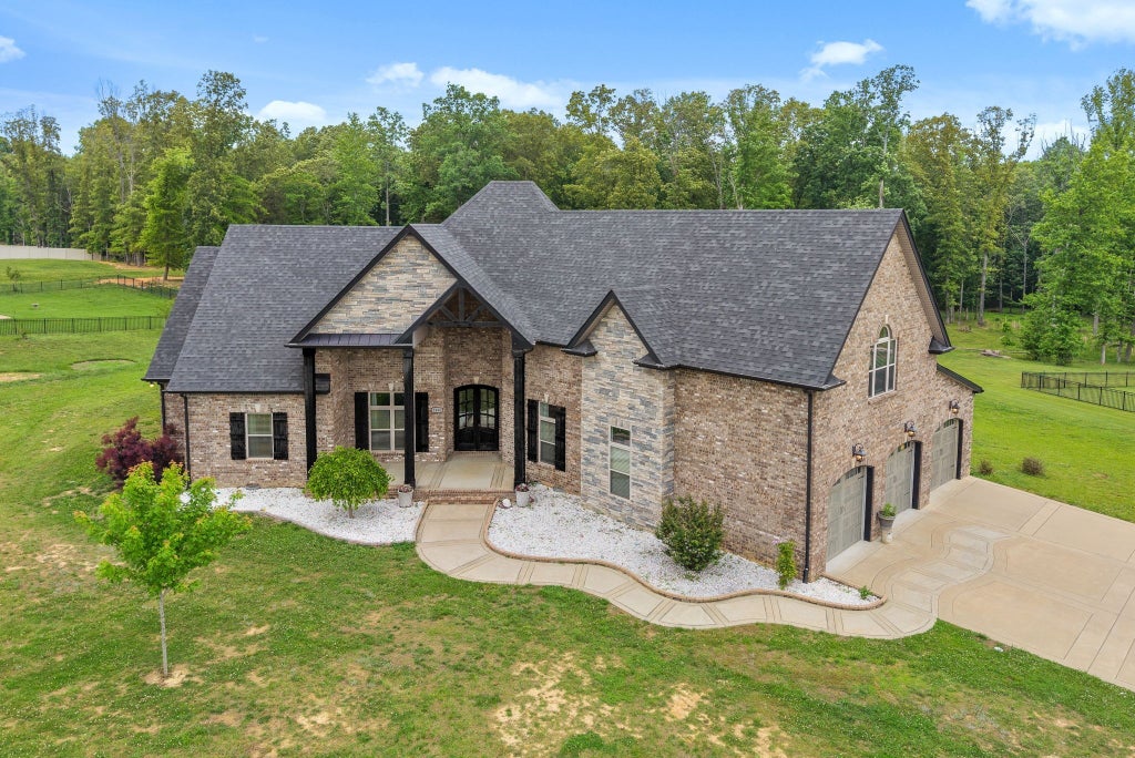 **Offering ONE YEAR HOME WARRANTY!! Freshly painted! NO HOA or CITY TAXES!! ***VA Assumable for Veterans at 3.875%!!*** If you have been looking for your DREAM home, right outside town, on almost 2 ACRES of land, this beautiful BRICK RANCH style home is it! This home features 3 main floor bedrooms, 3.5 baths, 3 car garage, and 2 additional FLEX ROOMS (one being used as a 4TH BEDROOM, and one being used as an OFFICE), extra large utility/laundry room (on main floor), PLUS a large BONUS room connected to a Jack n' Jill FULL bathroom, perfect for entertaining or as guest suite. You will be impressed with the inviting entry, amazing CURB APPEAL, extra tall ceilings, solid WOOD FLOORS, fireplace with stone accents, and open kitchen. Kitchen has stainless steel appliances, granite counter tops, and so much cabinet space. The living room is open with light streaming in, adding brightness and WARMTH to the space. All bedrooms have access to a full bathroom, another amazing perk! The backyard has a beautiful covered deck walking down into a stone patio perfect for a morning coffee on the swing or a fire pit in the evening. The backyard is fenced in, but also extends past the fenced area for even more space! Don't forget to check out the VIDEO walkthrough! Buyer and buyers agent to verify all pertinent information.